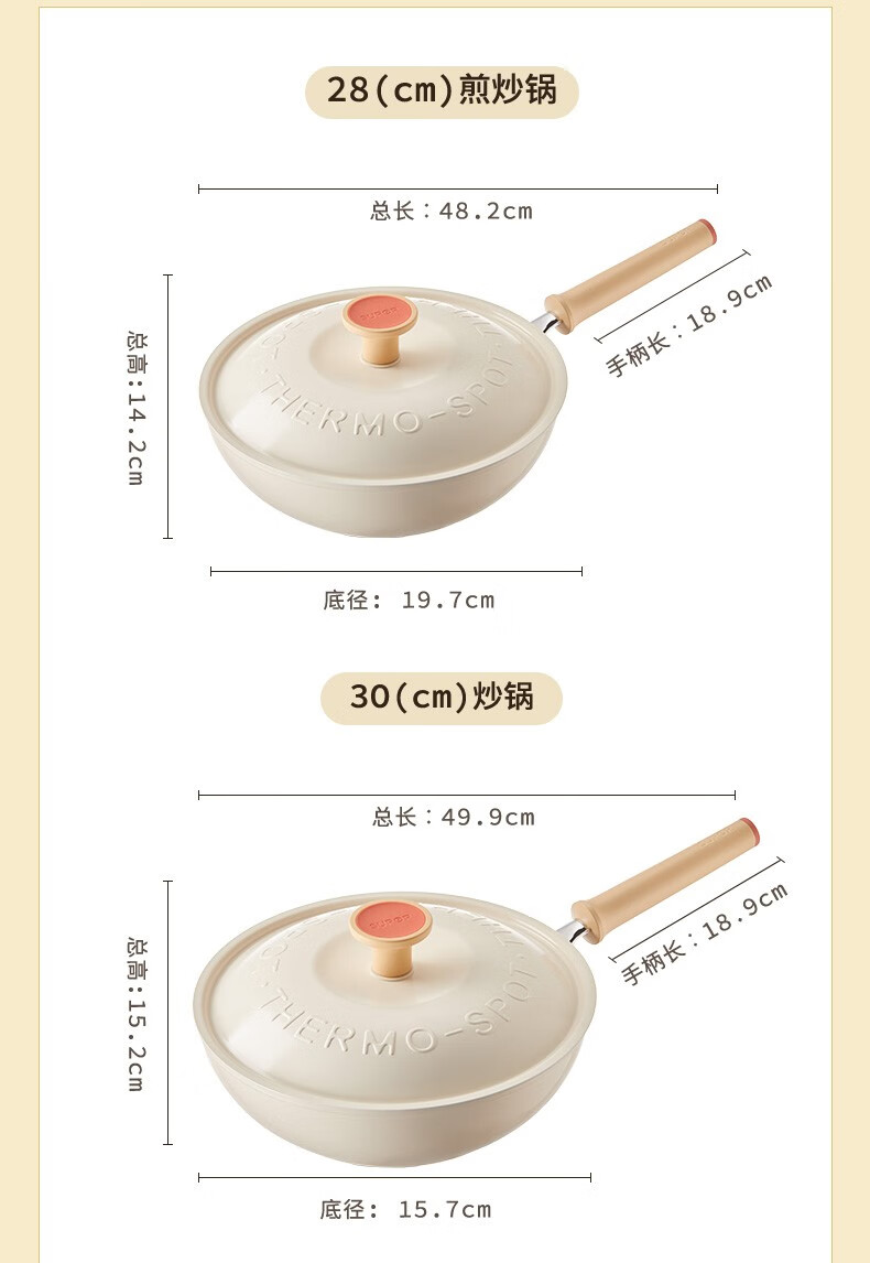首页 / 家用电器 / 厨卫小型电器 / 电炒锅 / 苏泊尔(SUPOR)不粘锅炒锅轻量火红点平底煎炒锅炒菜锅少油烟锅具燃气电磁炉通用不粘煎炒锅适用1-4人直径28cm