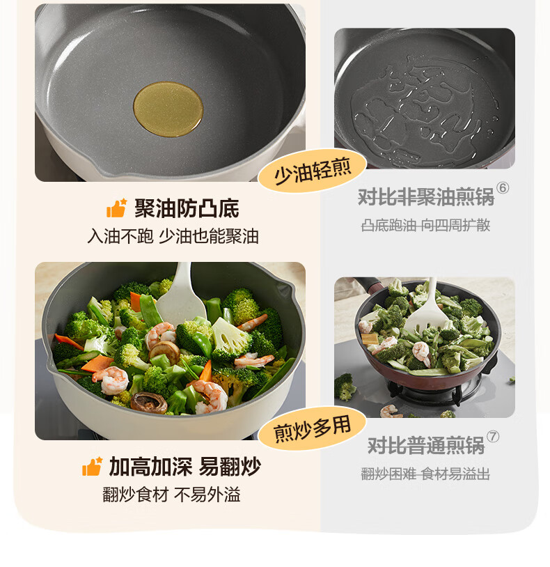 首页 / 家用电器 / 厨卫小型电器 / 电炒锅 / 苏泊尔(SUPOR)炒锅不粘小炒菜锅陶瓷覆层家用平底锅聚油深煎锅电磁炉燃气灶通用【聚油防凸底】直径24cm