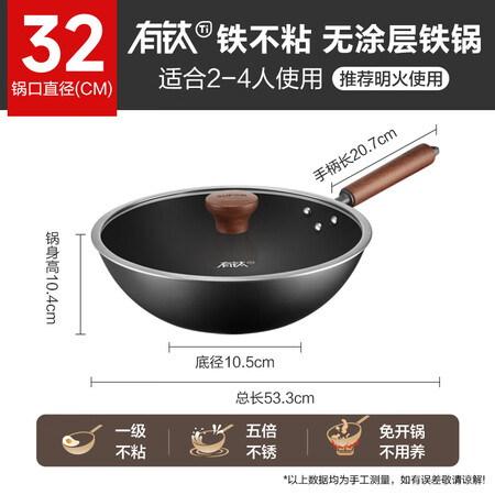 苏泊尔(SUPOR)铁锅有钛铁不粘炒锅无涂层不粘铸铁家用炒菜锅燃气电磁炉通用【多人选择】2-4人直径32cm