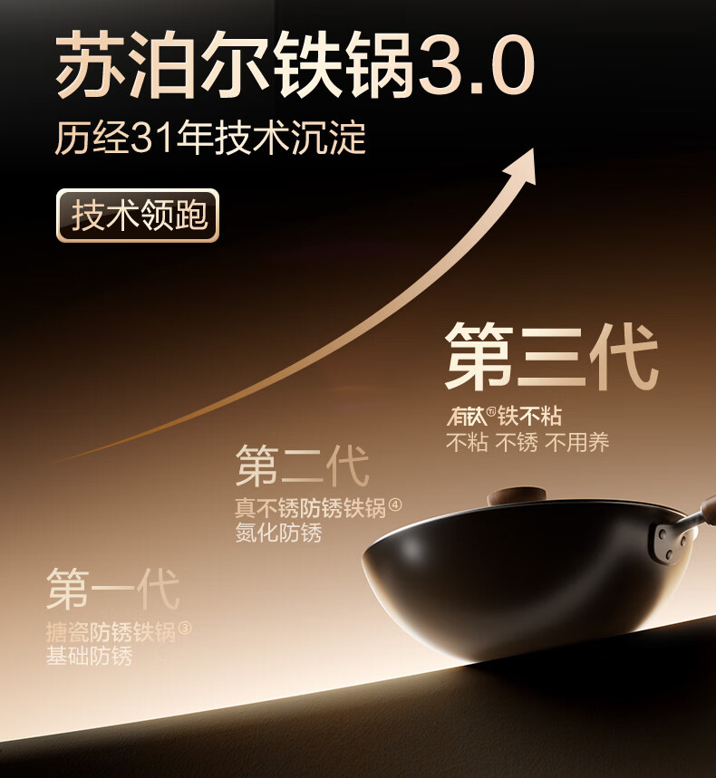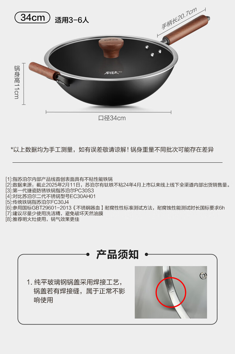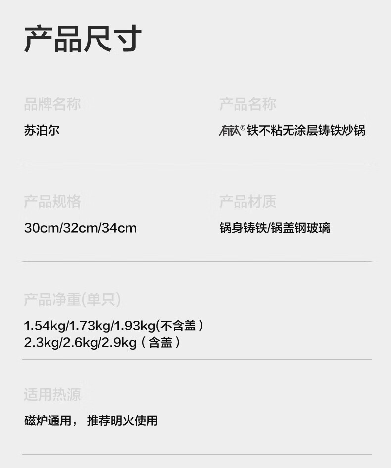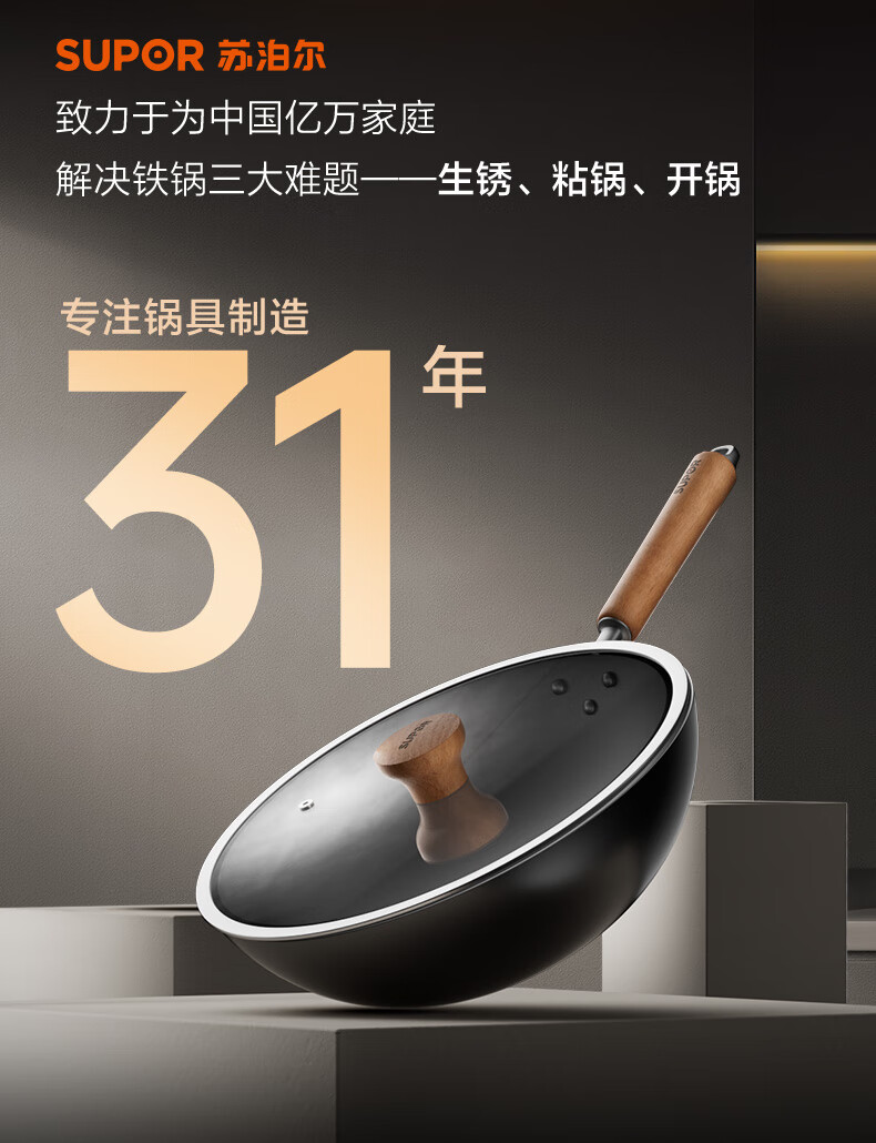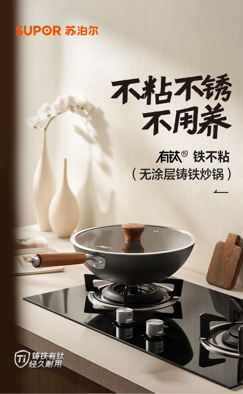 首页 / 家用电器 / 厨卫小型电器 / 电炒锅 / 苏泊尔(SUPOR)铁锅有钛铁不粘炒锅无涂层不粘铸铁家用炒菜锅燃气电磁炉通用【免开锅】1-3人直径30cm