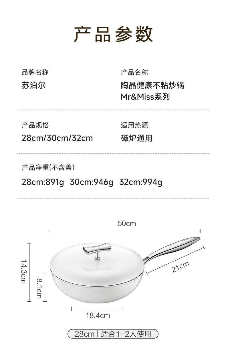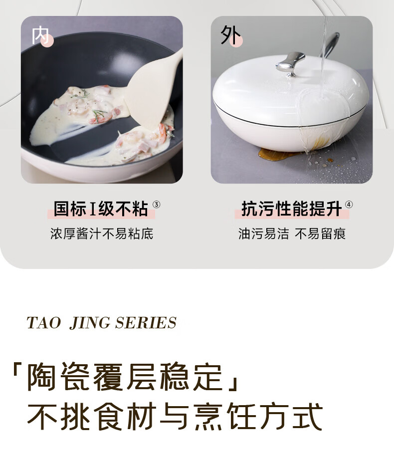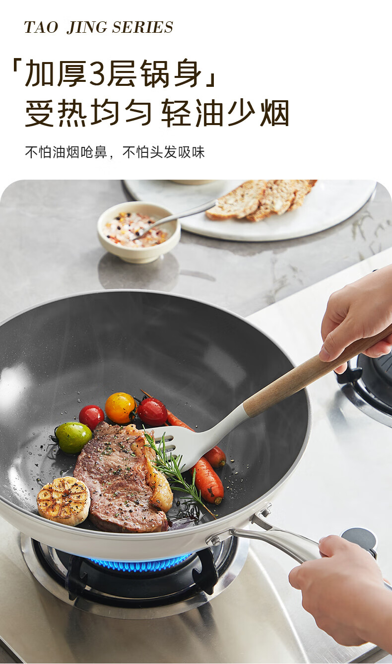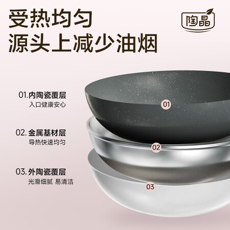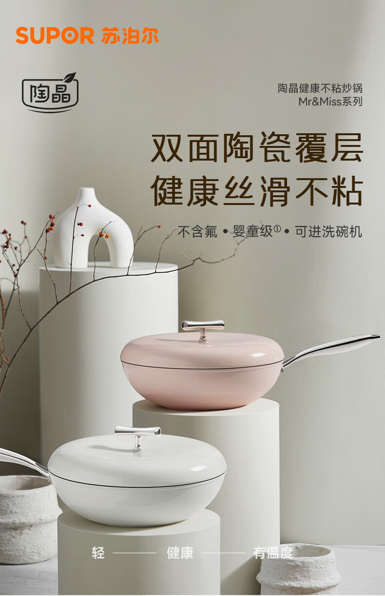 苏泊尔(SUPOR)炒锅不粘锅婴童级陶瓷覆层炒菜锅家用平底煎锅少油烟电磁炉燃气灶适合2-4人【多人选择】直径32cm