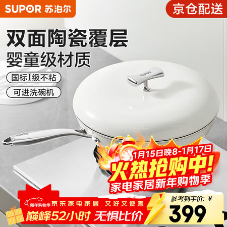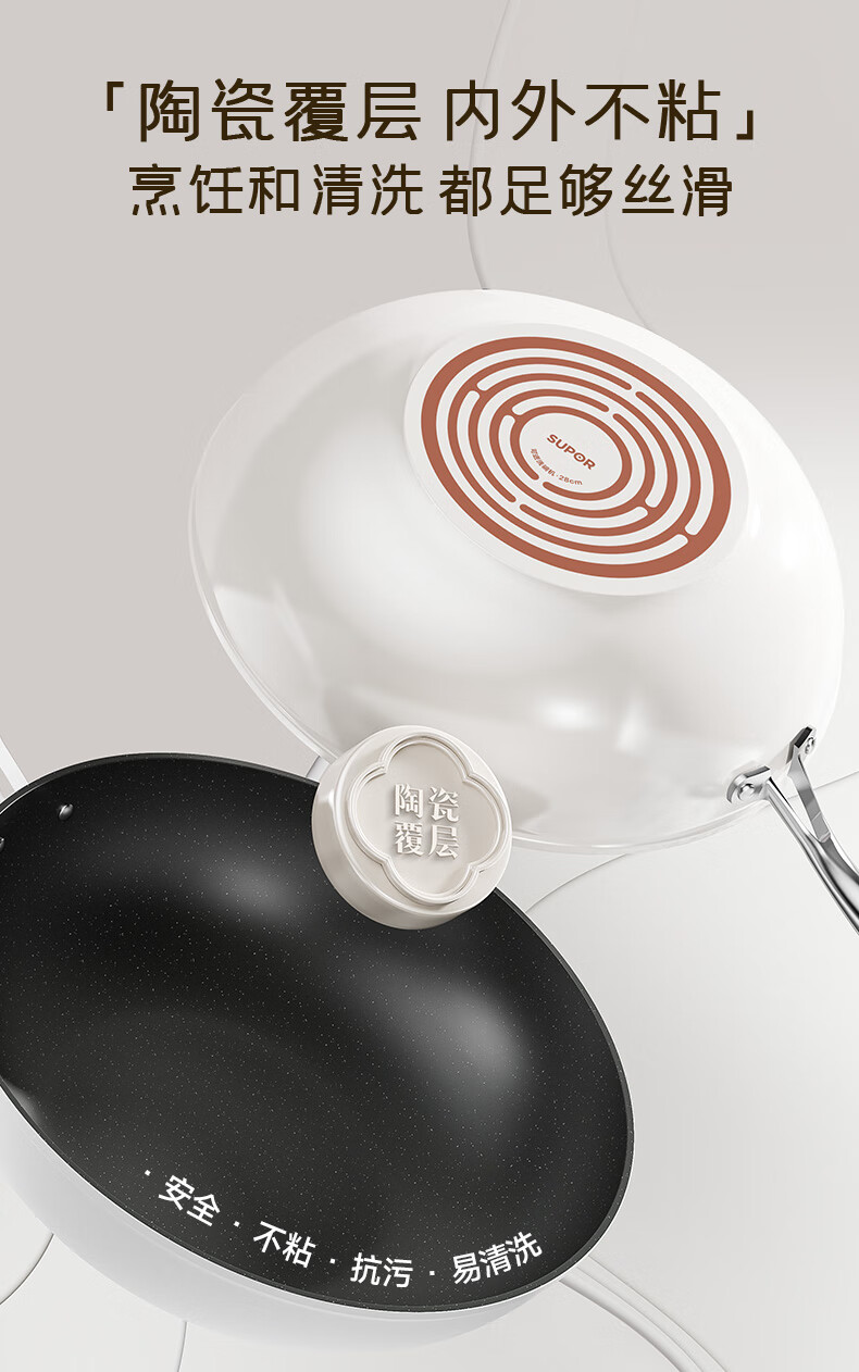 首页 / 家用电器 / 厨卫小型电器 / 电炒锅 / 苏泊尔(SUPOR)炒锅不粘锅婴童级陶瓷覆层炒菜锅家用平底煎锅少油烟电磁炉燃气灶适合2-4人【多人选择】直径32cm