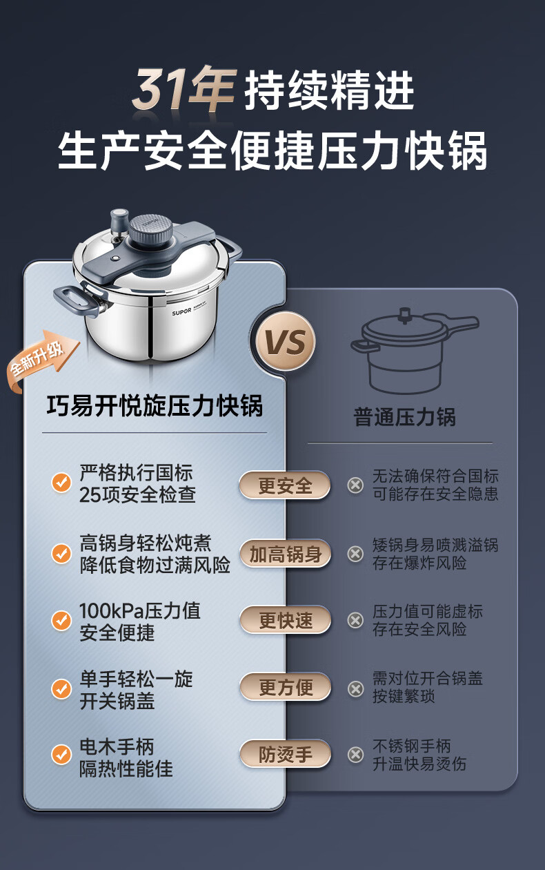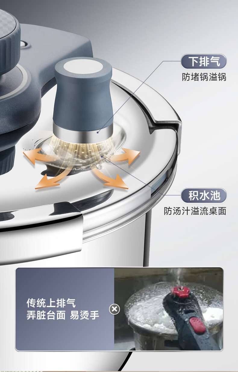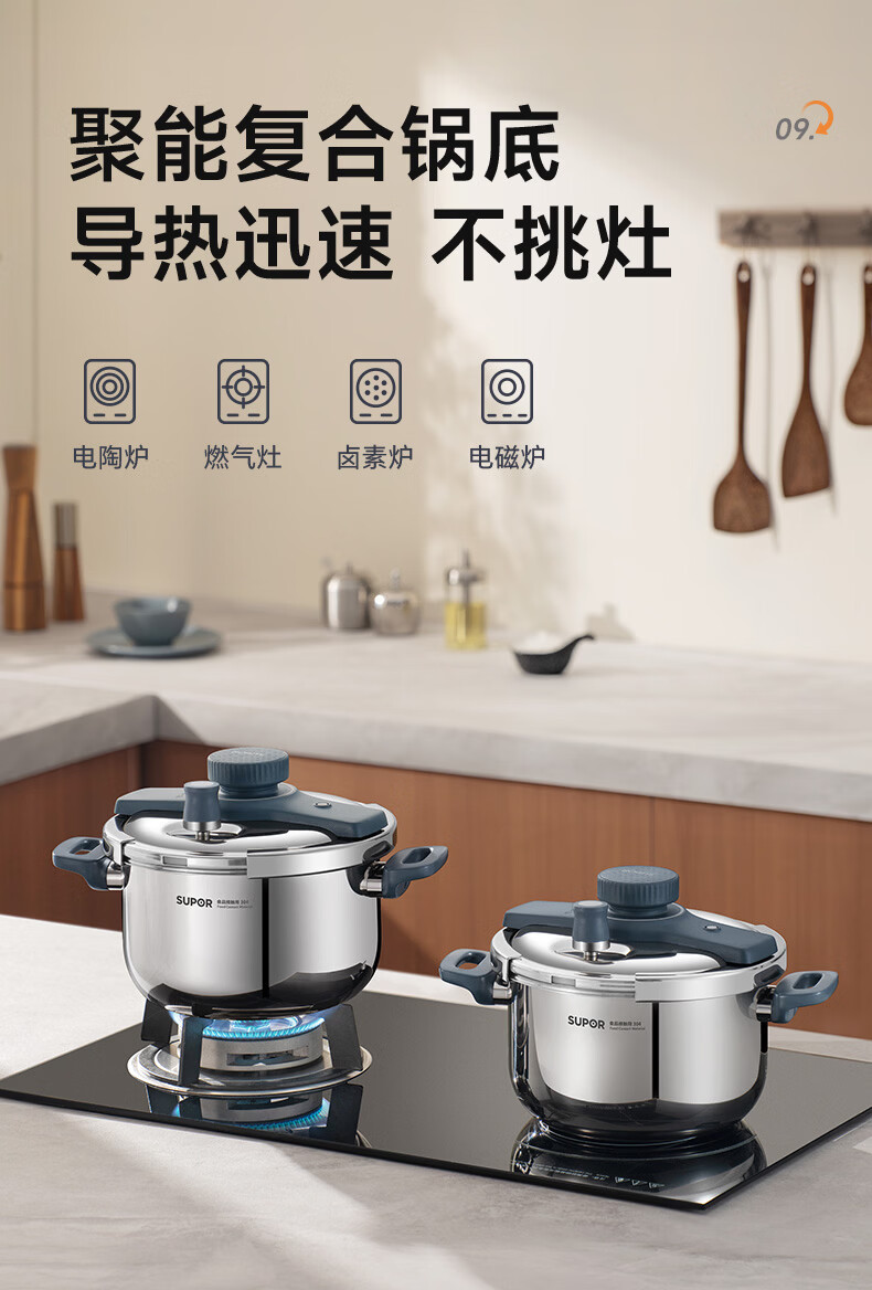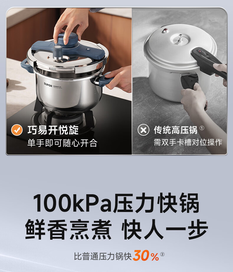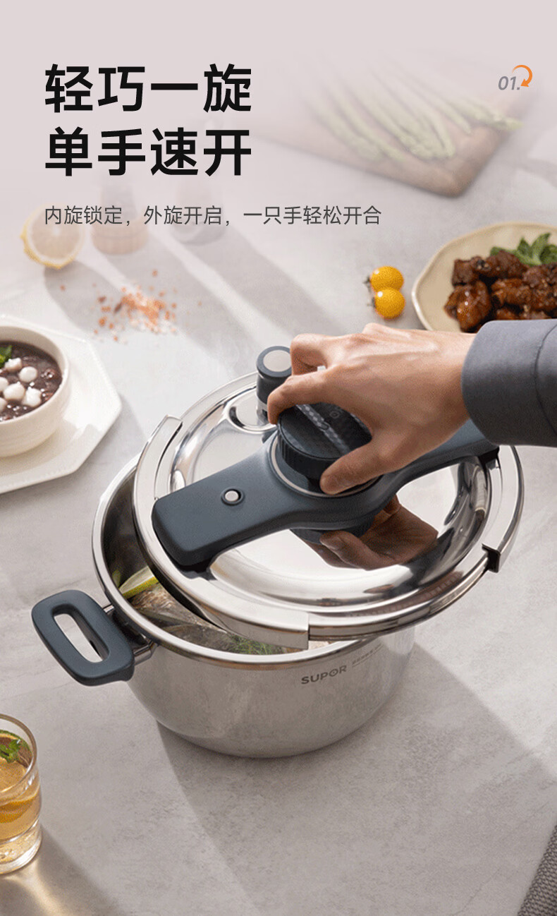 首页 / 家用电器 / 厨卫小型电器 / 煮蛋电炖锅 / 苏泊尔(SUPOR)高压锅家用304不锈钢压力锅防爆单手开合炖肉锅燃气灶电磁炉通用【可蒸可煮可炖】配玻璃盖蒸格汤勺22cm