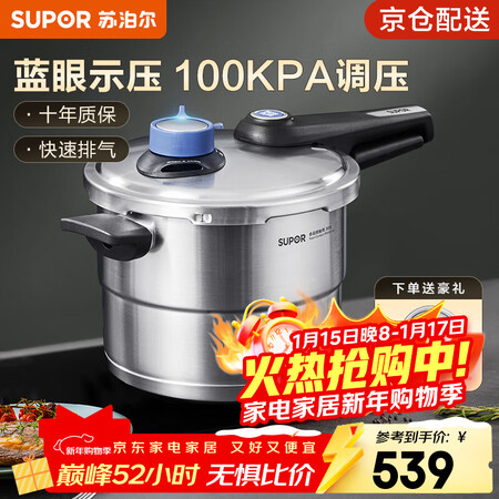 首页 / 家用电器 / 厨卫小型电器 / 电压力锅 / 苏泊尔(SUPOR)压力锅304不锈钢防爆高压锅蓝眼显压快煮炖汤燃气明火电磁炉通用直径【适合4-5人】24cm7.5L