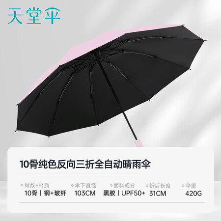 【天堂TTS】天堂全自动阳伞三折防晒防紫外线便携折叠反向晴女男山樱粉