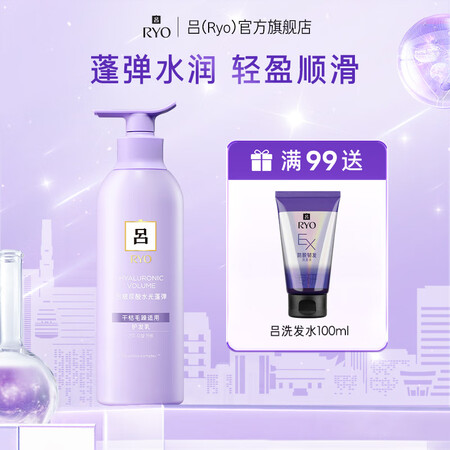 Ryo粉吕洗发水水光吕植萃鲜酵轻盈蓬松玻尿酸蓬弹控油去屑爱茉莉韩国水光吕护发素400ml(水润蓬松)