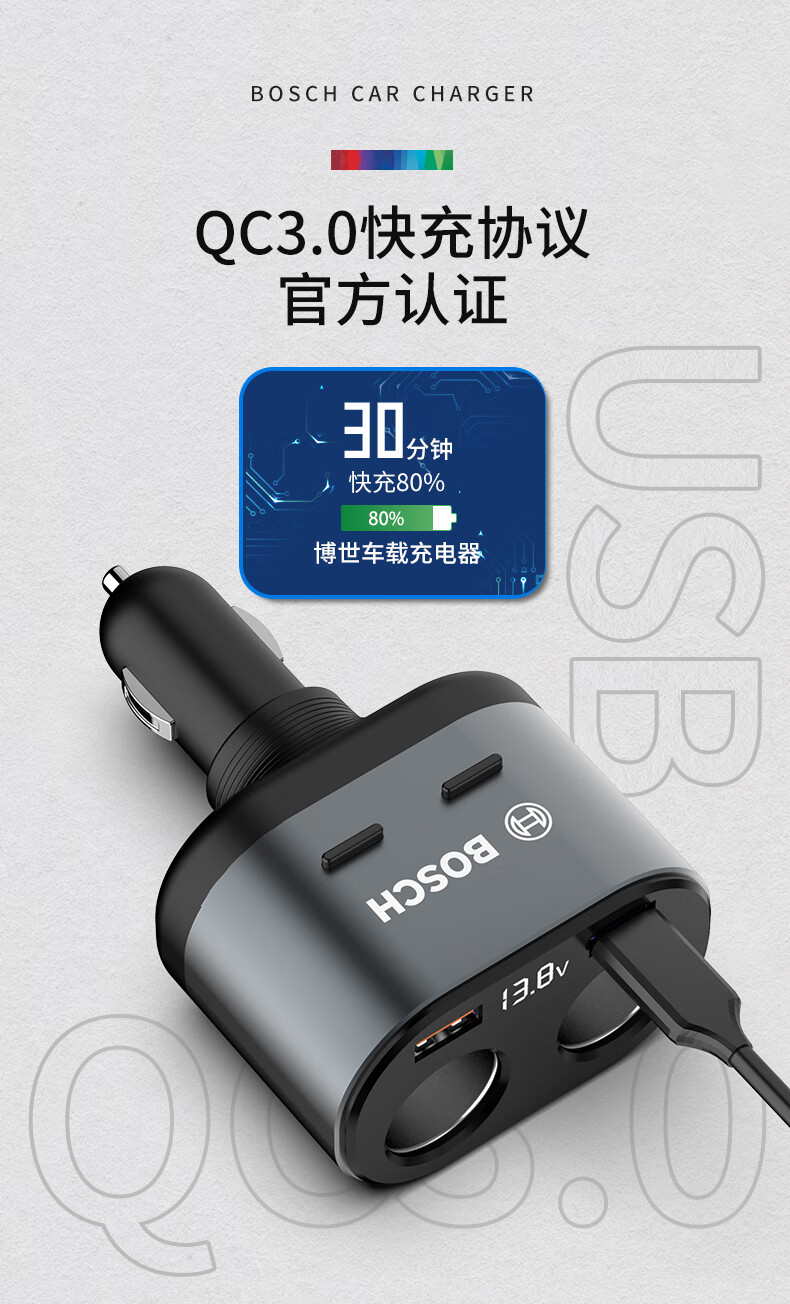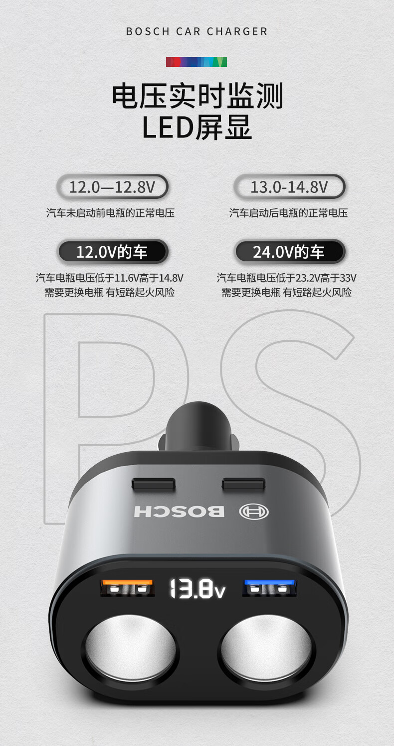 首页 / 汽车用品 / 车载电器 / 车载充电器 / 【博世PS700】博世(BOSCH)PS700车载充电器多功能汽车用一拖二三点烟器转换插头usb车充快充