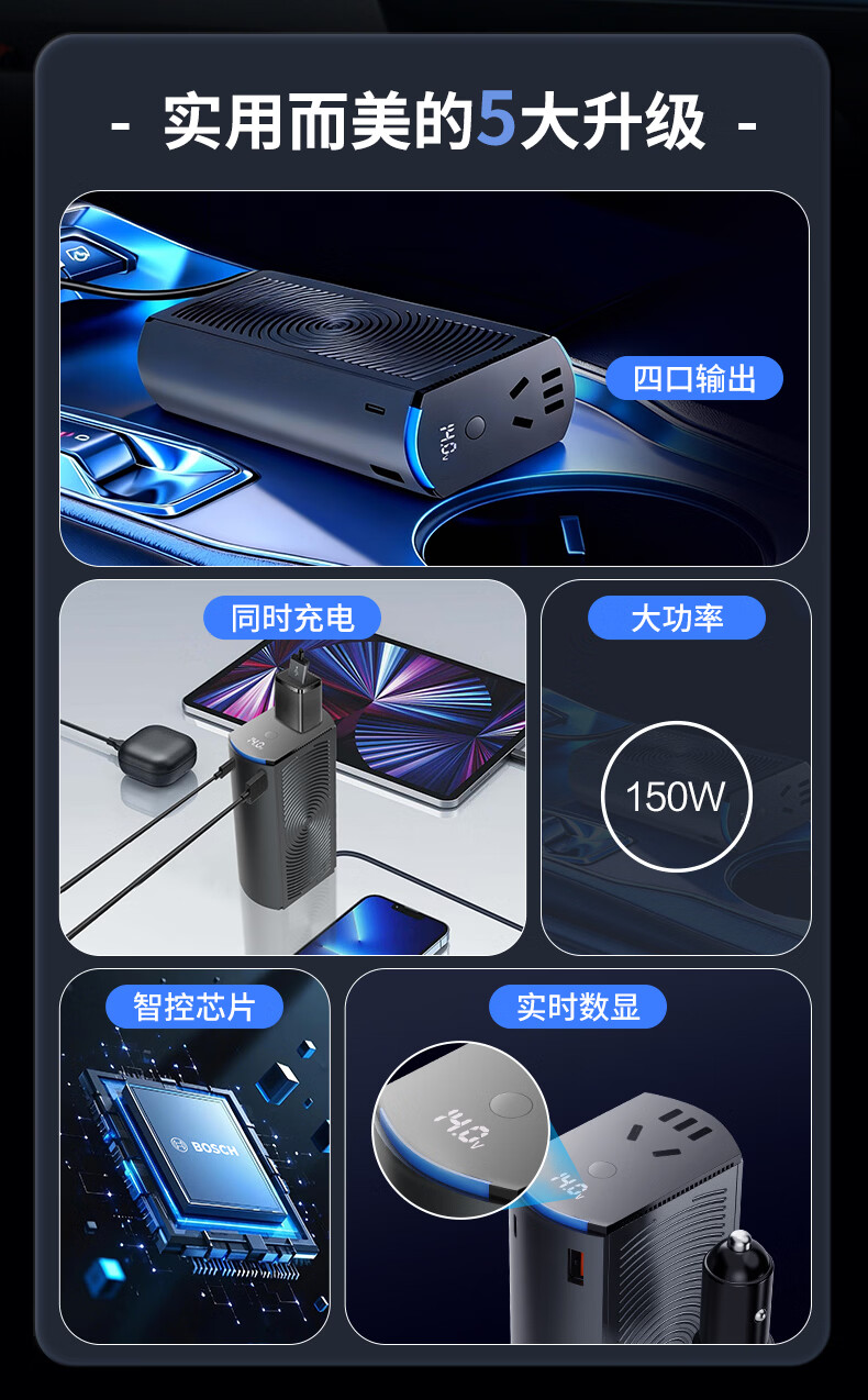 【博世LS600】博世(BOSCH)车载逆变器12V转220V120W大功率电源点烟充电转换变压器电源插座