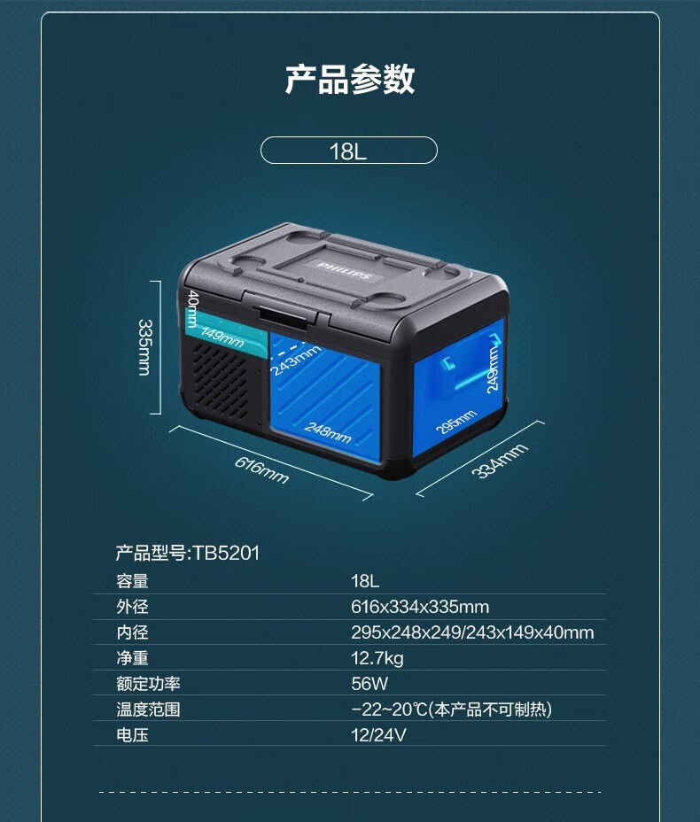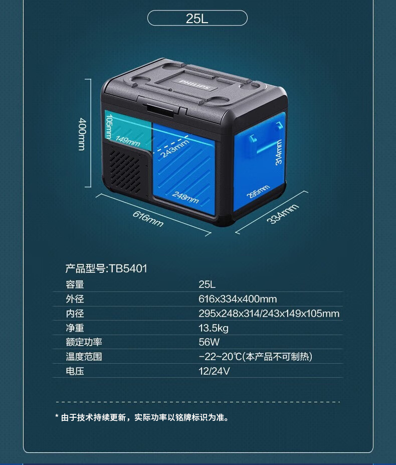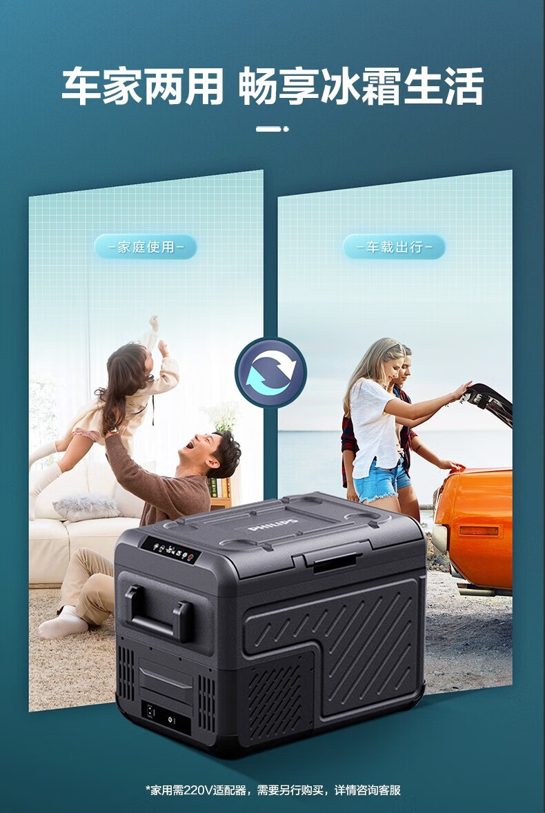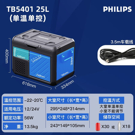 飞利浦(PHILIPS)车载冰箱车家两用冷藏冷冻家用办公室户外露营便携式压缩机冰箱25L车用TB5401