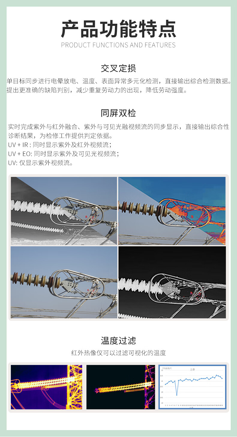 首页 / 智慧检测 / 智能监测 / 紫外成像仪 / DWKJWORLD紫外成像仪DW9219B四合一无人机吊舱电力检测分析