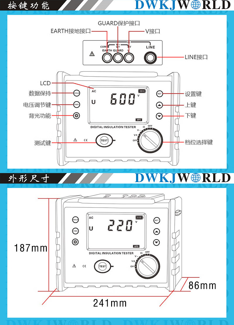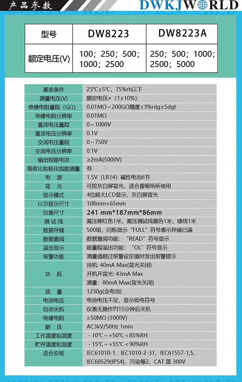 DWKJWORLD数字式兆欧表DW8223套