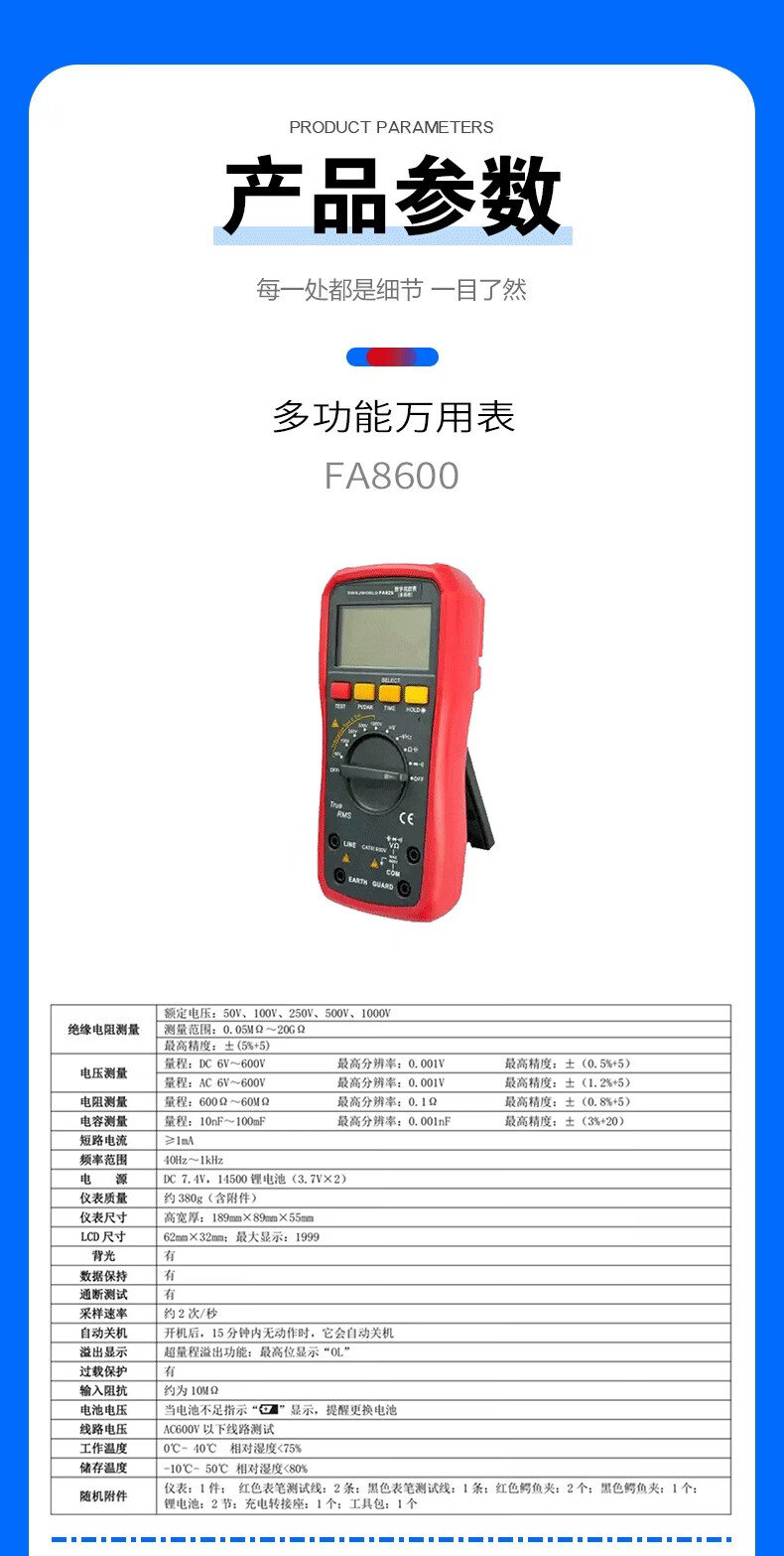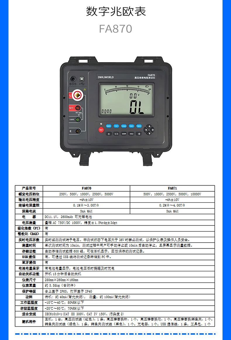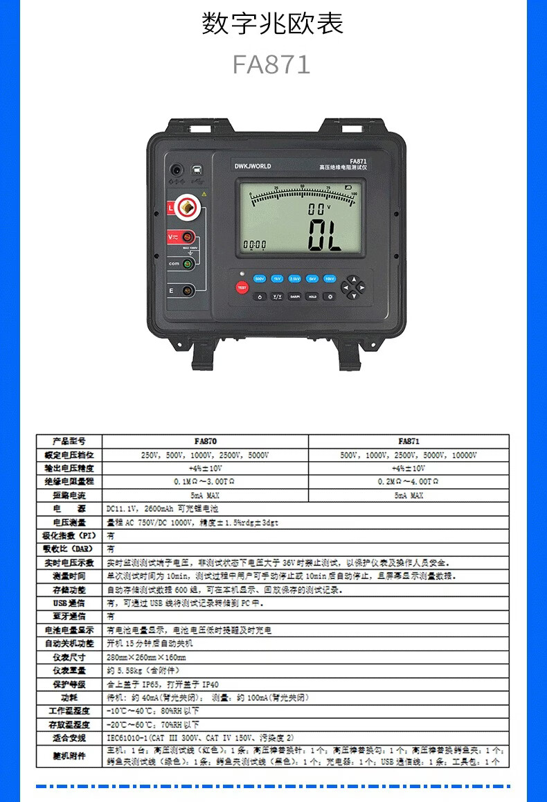 DWKJWORLD兆欧表多功能万用表FA8600台