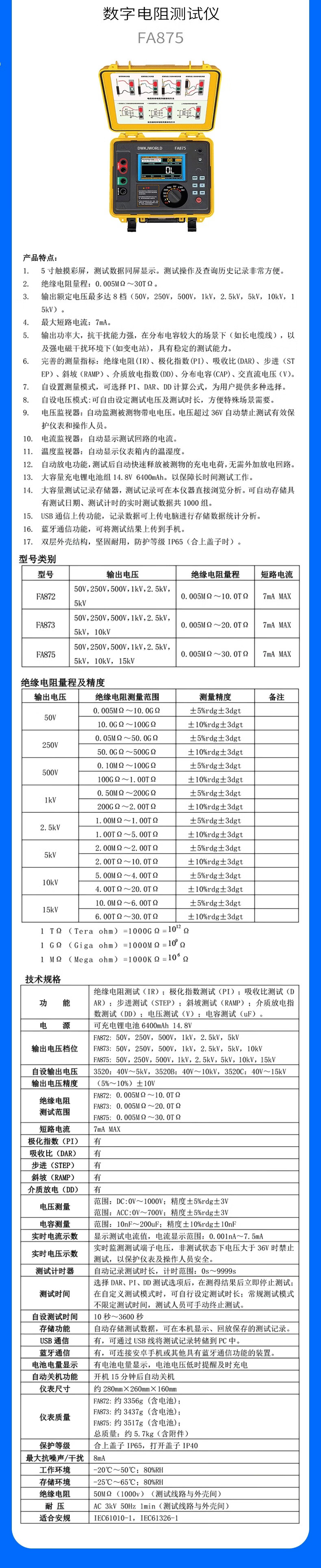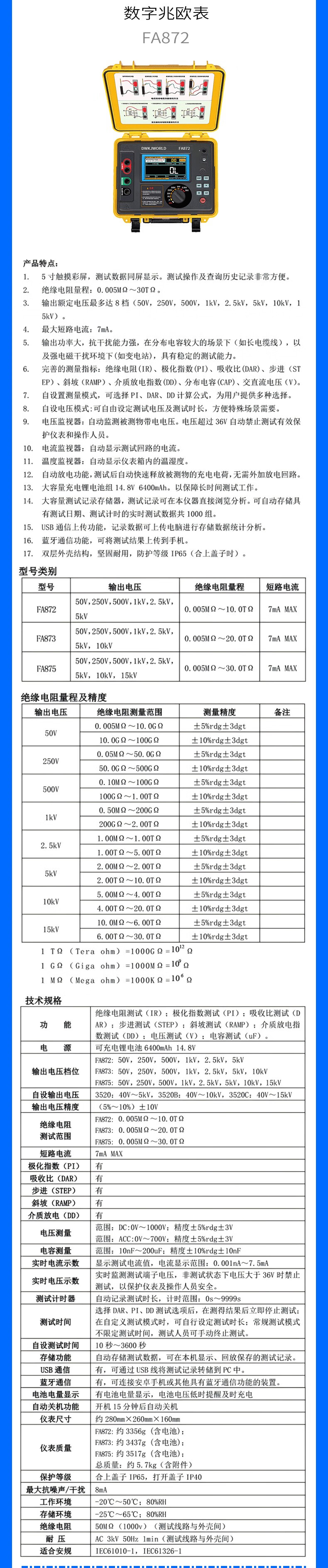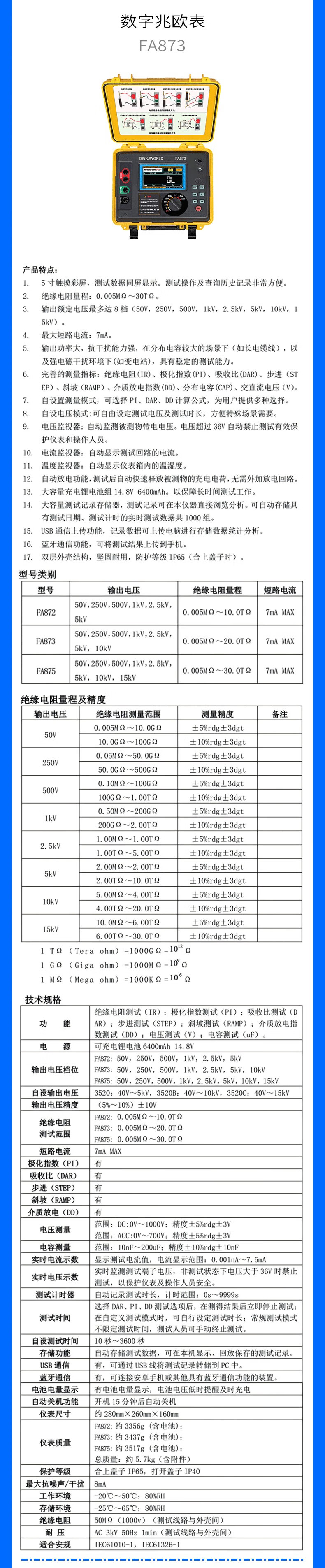 DWKJWORLD兆欧表多功能万用表FA8600台