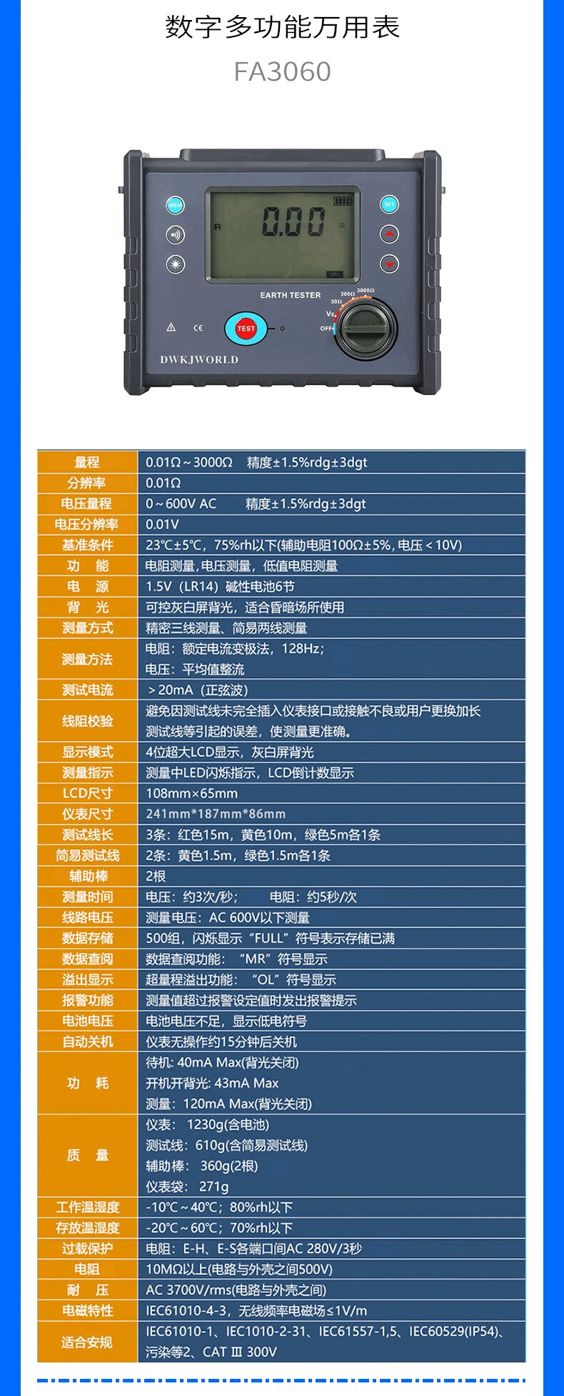 首页 / 生态场景 / 铁路专区 / 供电段 / DWKJWORLD兆欧表多功能万用表FA8600台