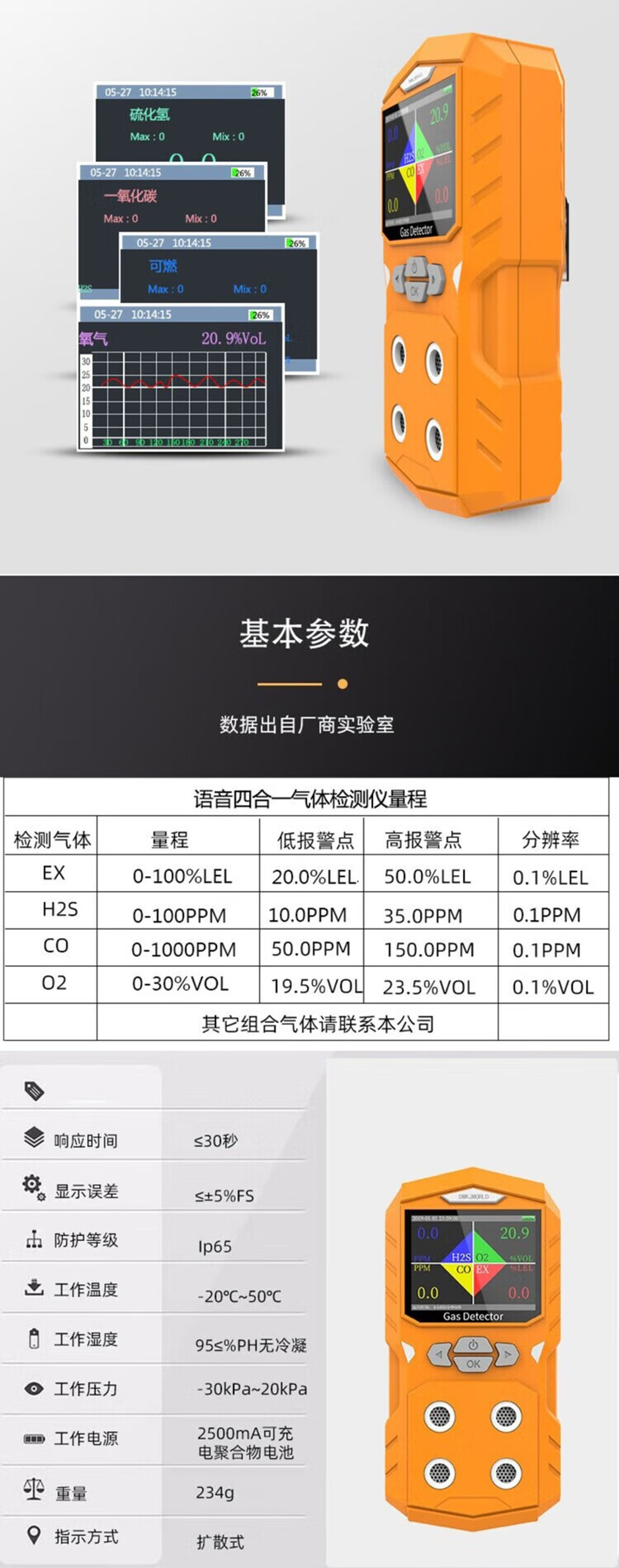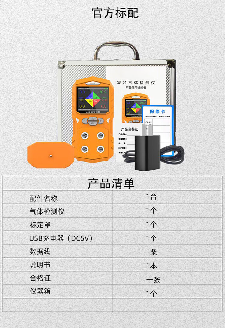 DWKJWORLD实用款泵吸式四合一气体检测仪DW2161A套默认