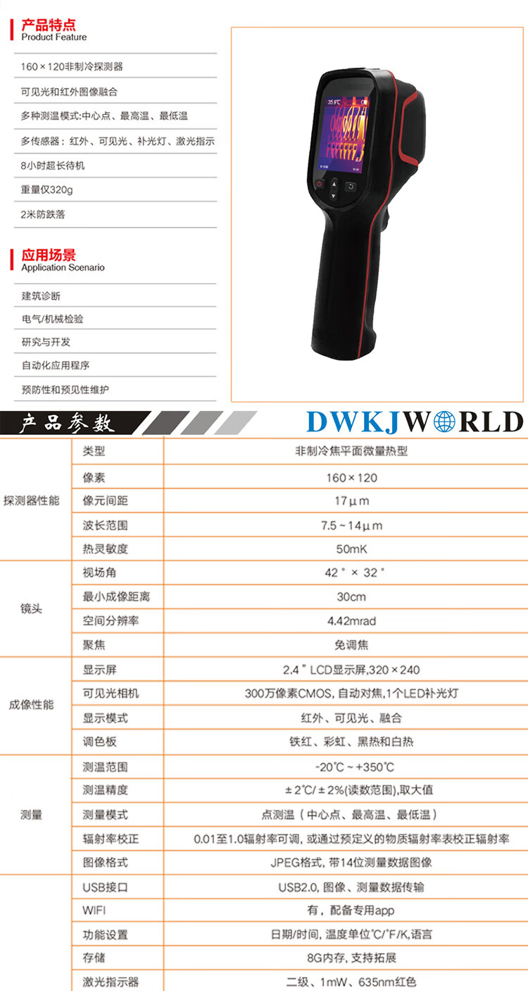 DWKJWORLD便携式红外热成像仪DW9518套