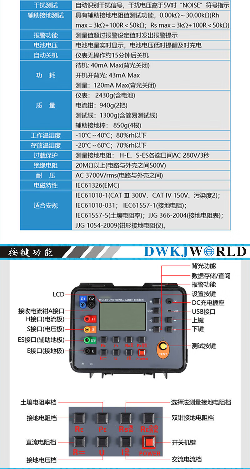 DWKJWORLD实用款泵吸式四合一气体检测仪DW2161A套默认