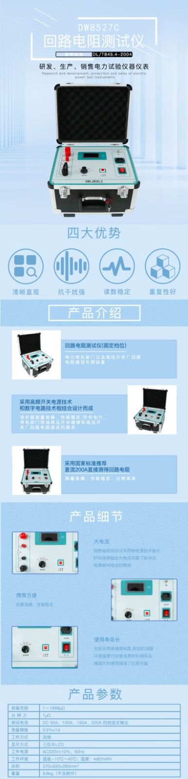 DWKJWORLD回路电阻测试仪DW8527C台